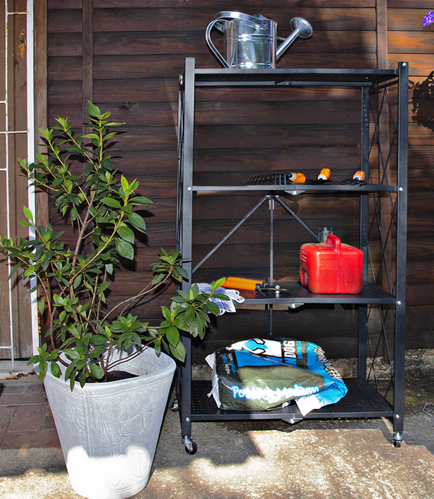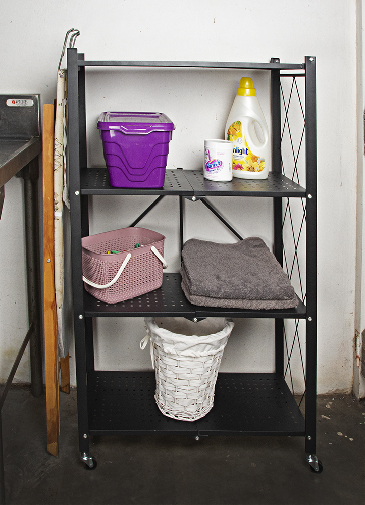 Simple and practical, stylish and sturdy! The Wildberry Fold Away Storage Rack is designed to be an all-around multi-functional space saver that is great for use in the garden, kitchen, bathroom, laundry, toy room or as a décor piece. The 4-tier rack is easy to assemble and provides large-capacity storage for small areas. The lockable castor wheels allow convenient movement and a secure rack when in place.Conveniently fold away the rack to store it in a broom cupboard, slotted next to the fridge or in your laundry room without taking up too much space.