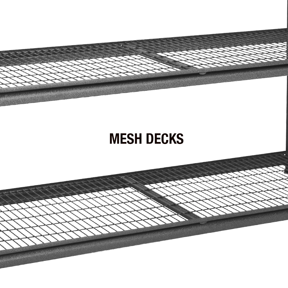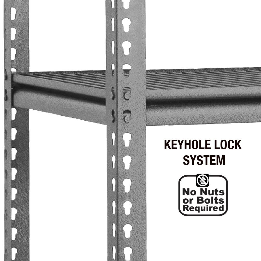 Constructed with heavy steel profiles and featuring 4 wire mesh decks, this shelving unit is built to last. The keyhole lock system eliminates the need for nuts or bolts, making assembly a breeze. The powder-coated finish adds a sleek touch to the design, perfect for use in the home, garage, or warehouse.