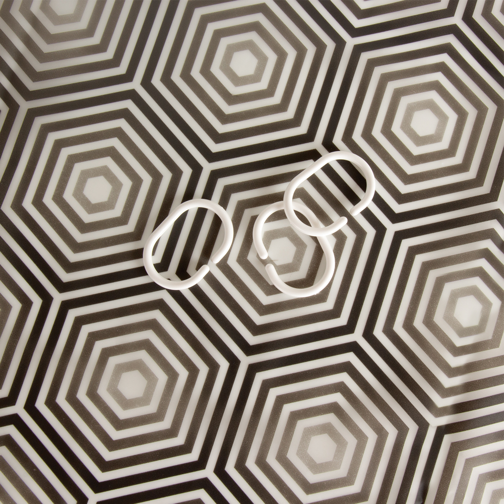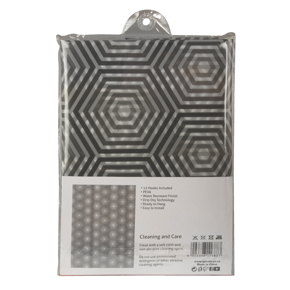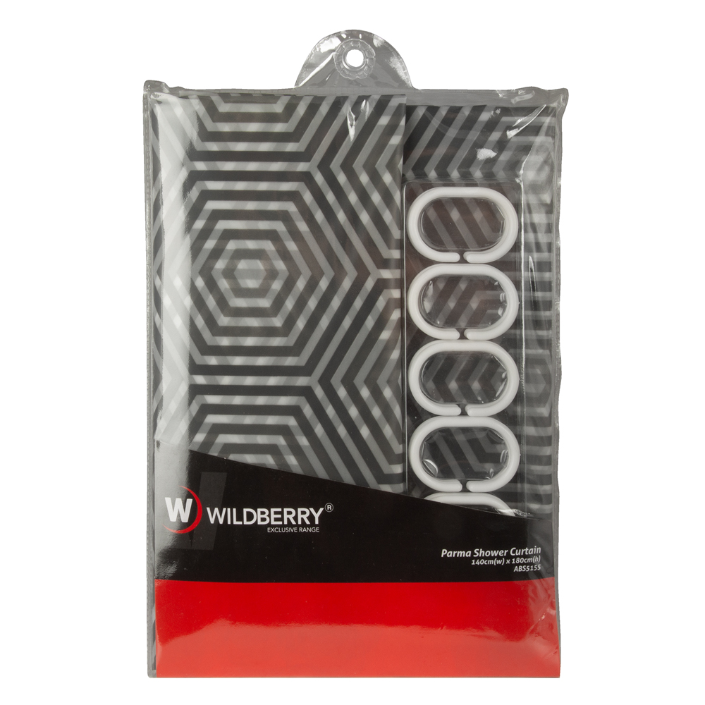 Dress up your bathroom with the Wildberry Parma Shower Curtain. The black and white geometric printed shower curtain is easy to install using the supplied hooks. The timeless style is complementary to most bathroom accessories and décor. Manufactured from durable and quick-drying fabrics, the curtain is easy to clean with a soft cloth and non-abrasive cleaning agent. To maintain the bright look of the curtain, do not use ammoniated detergents or other abrasive cleaning agents.